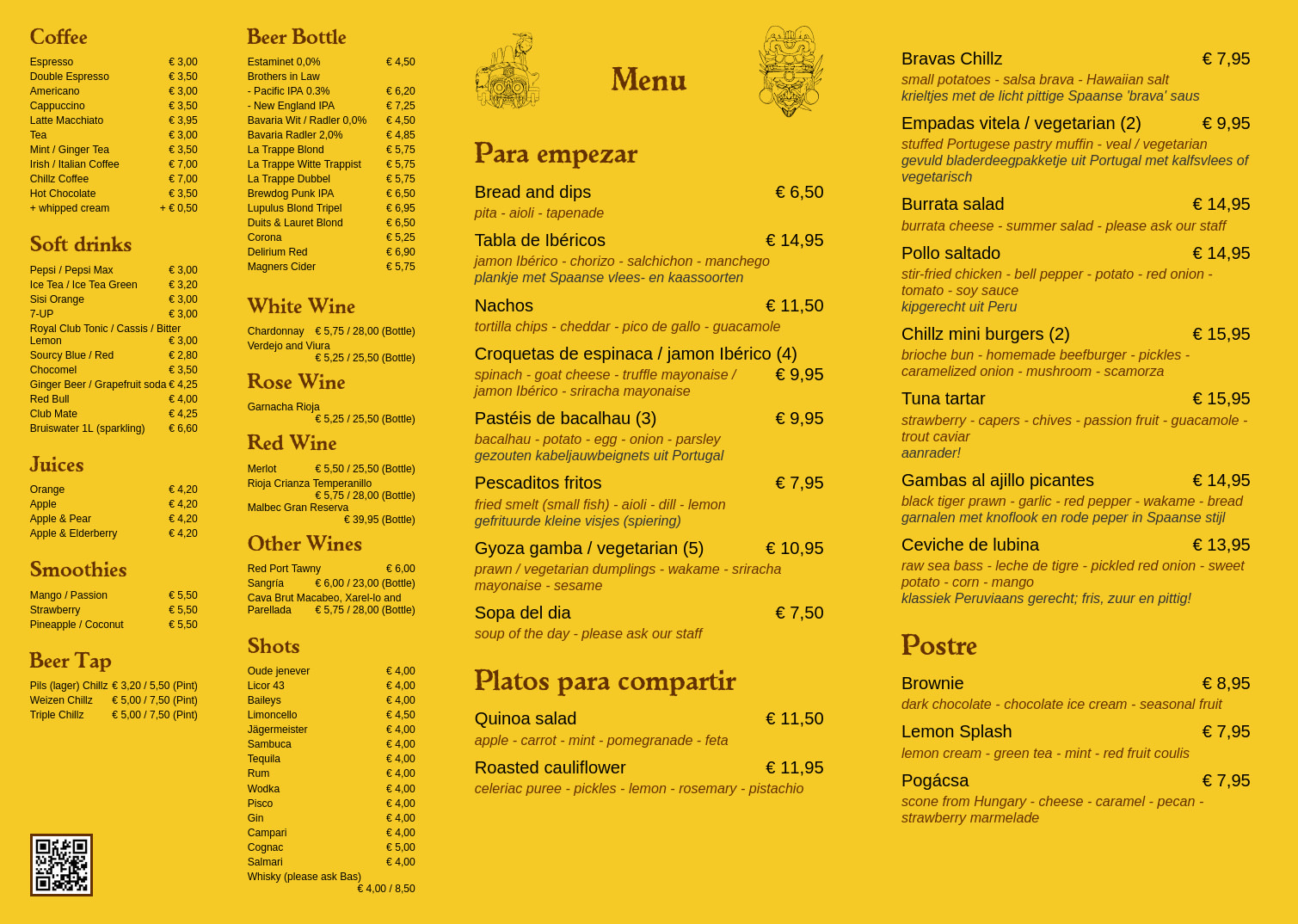 Menukaart van Chillz
